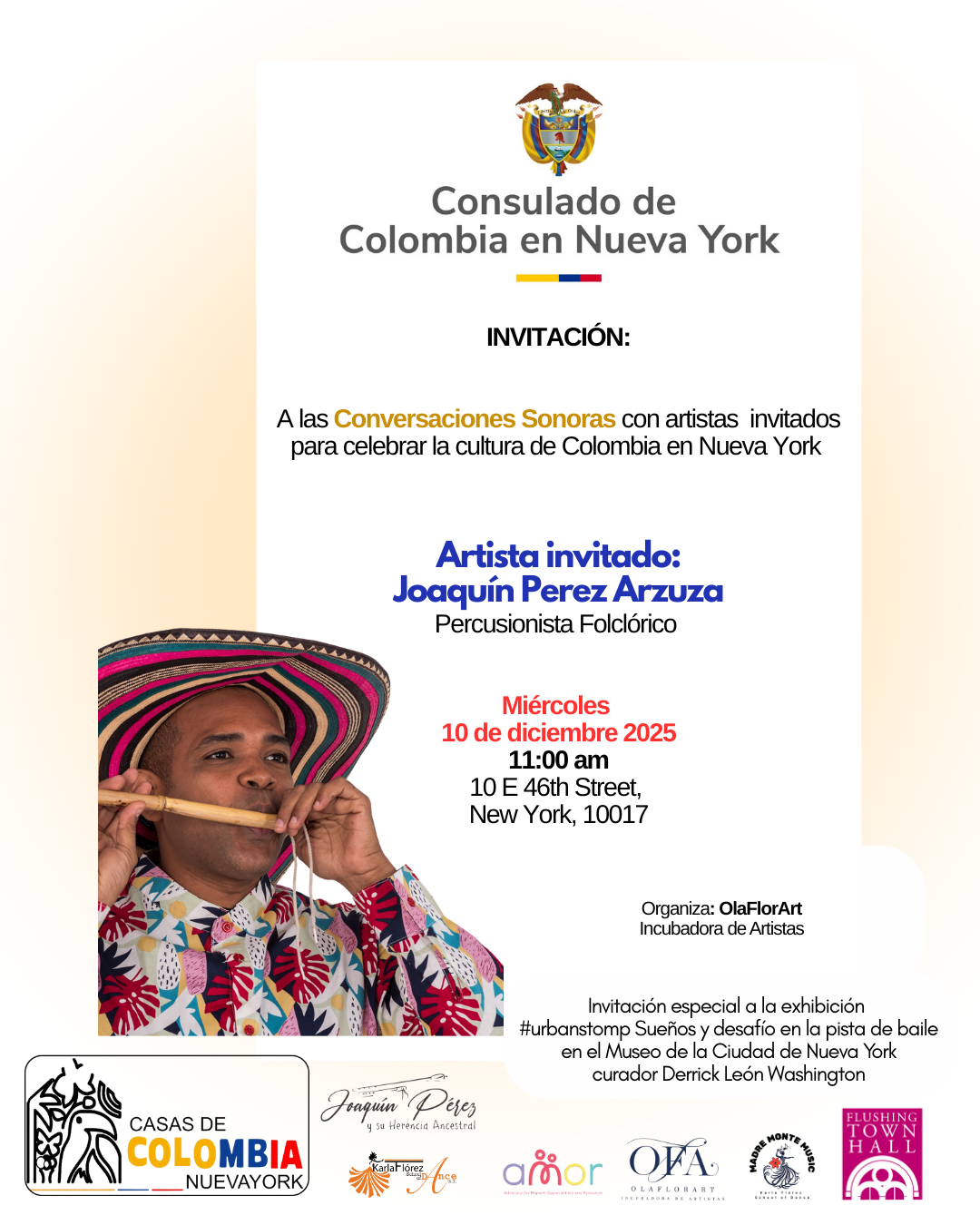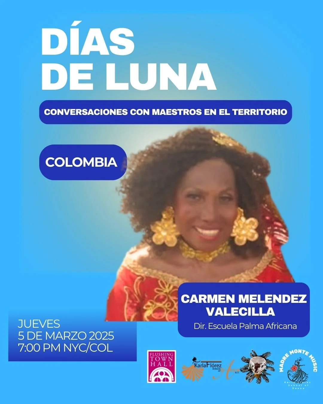 In person events with a space for conversations with artists visiting New York. In this way, we generate spaces for dialogue to continue promoting and raising awareness of some of Colombia's thousands of dances and rhythms. This in-person event is held to introduce Colombian artists visiting New York City. The goal is to foster communication and exchange ideas about the cultural processes taking place in both locations. We collaborated with the different institutions to offer their venues to have also performances by the visiting artists.